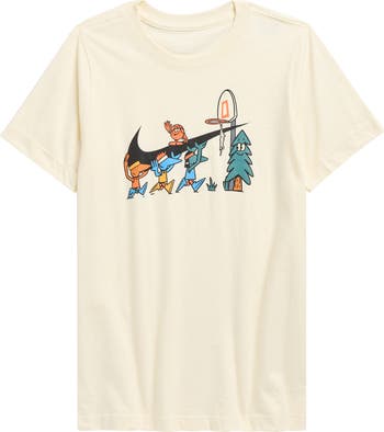 A perfect pick for playtime, this kid‑approved T-shirt features a Swoosh-marked character graphic that scores a style slam dunk.