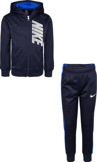 This comfortable and sporty set for your kiddo features cozy joggers and a zip-front hoodie with a logo graphic.