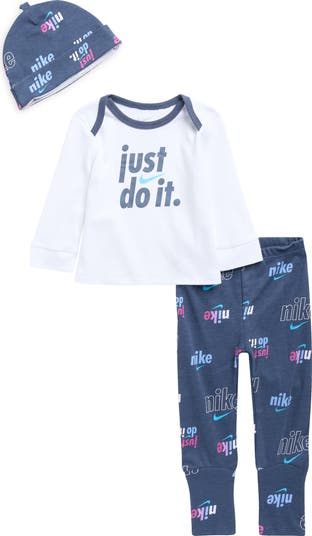 Baby can rep their favorite brand in this cotton-blend set that pairs an envelope-sleeve top with coodinating leggings and a matching hat.
