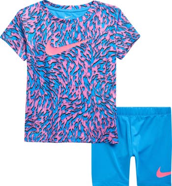 Your little one will look cute and sporty in this active set featuring a graphic T-shirt and matching bike shorts that keep them moving.