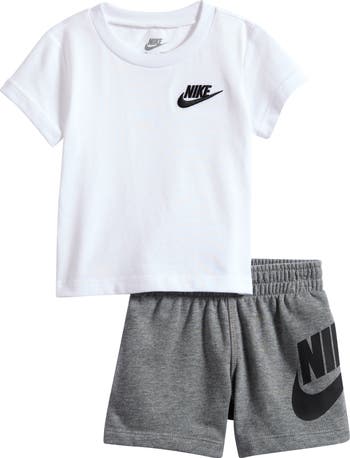 Soft fabric offers daily comfort for your kiddo in a sporty T-shirt featuring a signature swoosh logo and paired with coordinating shorts.