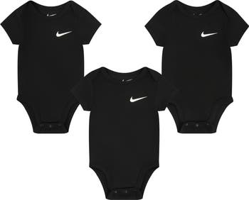 Stock up on essentials for baby with this trio of bodysuits crafted of a lightweight cotton blend and adorned by Nike's classic Swoosh logos.