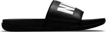 Debossed logos pop from the bridge straps of classic, comfortable sliders that sport underfoot contouring and in-sole flex grooves for easy movement.
