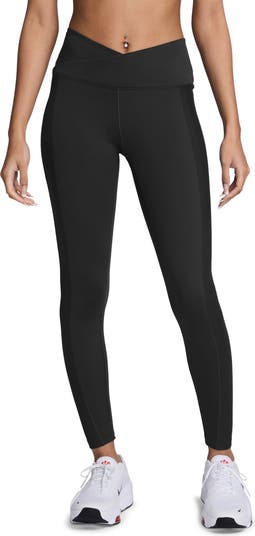 A high crossover waistband brings sporty-chic style to ankle leggings constructed from Dri-FIT moisture-wicking fabric with ribbed side panels.