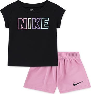 Nike's branding marks the T-shirt and shorts in a sporty set for baby that has them looking like a true athlete.
