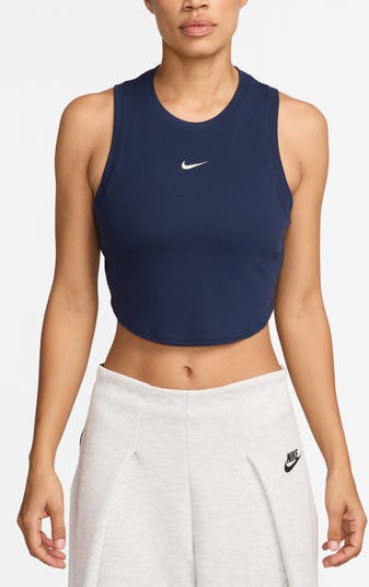 A signature Swoosh brands the front of a crop tank in a soft and stretchy rib that moves with you from practice to perusing the farmer's market.