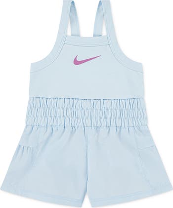 A smocked waist and moisture-wicking tech will keep baby comfy and cool in this sporty, Swoosh-marked romper.