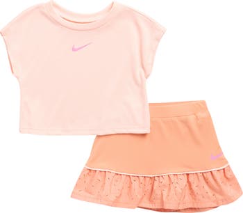 Your little one will look cute and sporty in this active set featuring a graphic T-shirt and matching skort that keep them moving.