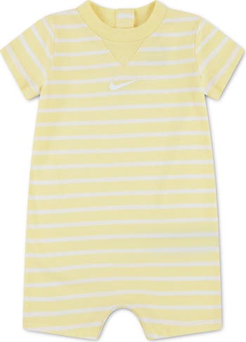A soft cotton-blend knit keeps your little one playing and snuggling comfortably in a romper with signature swoosh print and convenient snaps for easy changing.