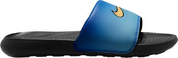 Lightweight cushioning meets supportive comfort in beach-to-bleachers slide sandal molded with textured footbeds and brightly colored strap.