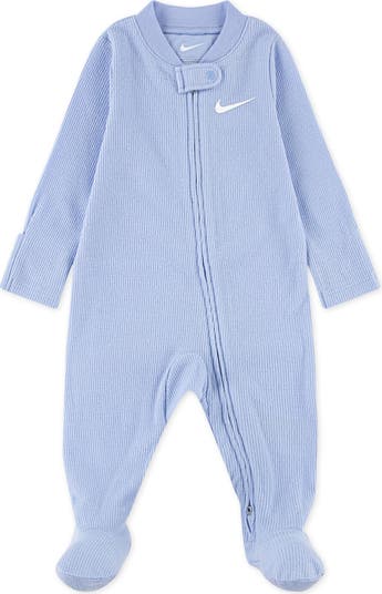 A soft waffle knit brings all-night comfort to this sporty Swoosh-embroidered footie made with a front zip closure for easy diaper changes.