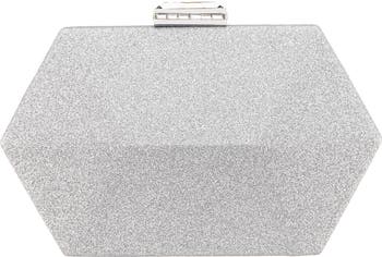 This dazzling evening clutch is all about the details: glitter illuminates the faceted gem-shaped silhouette of a standout clutch.