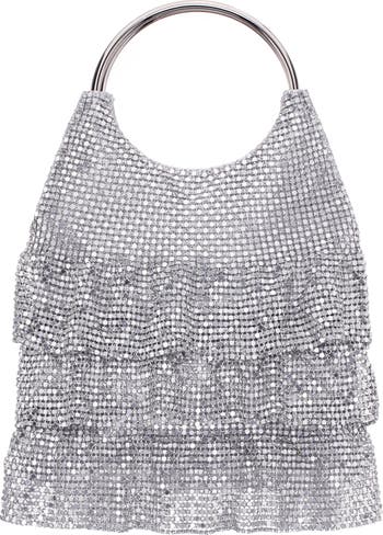 This evening bag dazzles with tiers of shimmery mesh that cover a ring-top clutch. An optional chain strap delivers chic hands-free style to this festive bag.
