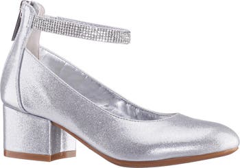 A rhinestone-embellished strap shines at the ankle of an event-ready pump built with memory-foam cushioning for lasting comfort.