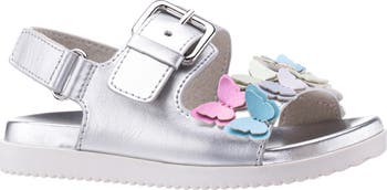 Soft cushioning and a flexible grip sole deliver kid-approved comfort to a charming sandal finished with 3D butterflies for a touch of whimsy.