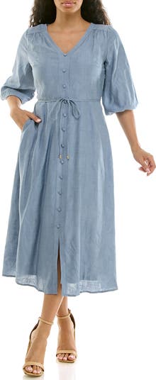 Balloon Sleeve A-Line Midi Dress