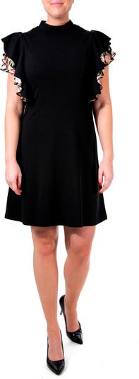 Fluttery patterned sleeves bring movement to this woven dress for chic style.