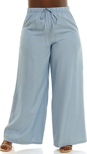 Full-length wide legs lend on-trend appeal to casual pants made customizable thanks to the drawstring waist.