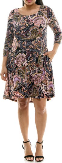Breeze through your weekend in this soft jersey trapeze dress framed by three-quarter sleeves, handy pocket and a subtle high-low hem.