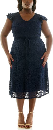 This lace flutter-sleeve dress in a fit-and-flare silhouette is finished with elastic waist for a figure-flattering fit.