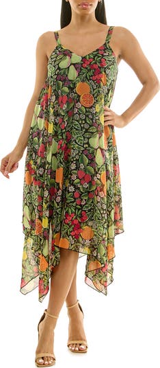 • DONNA MORGAN FOR MAGGY Sleeveless Draped Front Asymmetric Hem Dress
