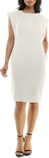 Pleats at the neckline, fluttery cap sleeves and side-seam pockets frame this versatile sheath that'll take you from desk to dinner with ease.