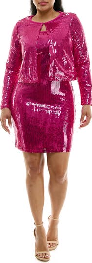 A matching bolero completes your night-out look when you don this tank dress covered in sequins that rival the shine of a disco ball.