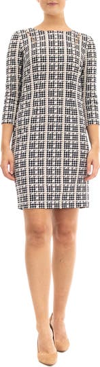 Three-Quarter Sleeve Faux Pearl Sheath Dress