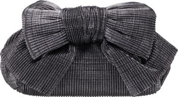 Make a statement with this bow-shaped clutch fashioned from rib-textured pleats. An optional chain strap adds the perfect mix of elegance and edge to this special occasion style.