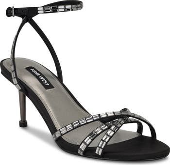 Baguette crystals kick up light in this glam sandal that's anything but boring.
