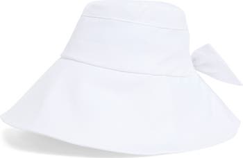 Shade your face from the sun in this chic bucket hat wrapped with a matching bow with fluttery tails.