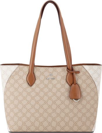 Perfect for storing all your essentials, this spacious faux‑leather tote features signature monogram detailing and a triple‑compartment interior.