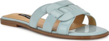 Smooth, shiny straps make a signature statement on this outfit-refining slide sandal.