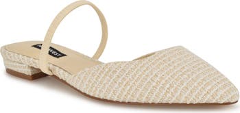A woven upper give vacay-ready vibes to this pointy-toe mule.
