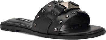Polished pyramid studs instantly upgrade the look of a streamlined slide sandal that's a key part of your casual wardrobe.