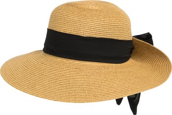A drapey ribbon trim adds an air of elegance to a floppy hat that takes you from morning beach walks to warm, summery nights.
