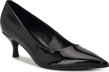 Complete a perfectly polished look with this shiny faux-leather pump framed by a chic pointed toe and a tapered heel.
