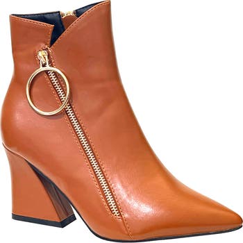 Punctuate any outfit with this pointed-toe bootie featuring O-ring and side-zip closures with an angled block heel for chic style.