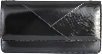 Show off chic style with this glossy faux-leather envelope clutch framed by a magnetic snap-flap closure and removable chain strap.