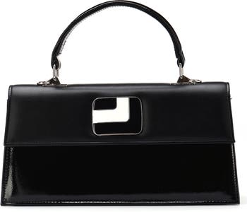 A two-toned hardware accent punctuates the flap of this compact clutch outfitted with an optional chain strap for carrying versatility.