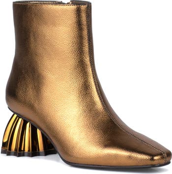 A tapered toe frames the polished silhouette of this boot with a bold fluted block heel, bringing a sophisticated edge to any wardrobe.