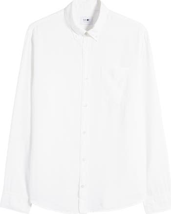 Solid coloring brings easy versatility to a button-down shirt cut from a sustainable fiber for an eco-smart choice.