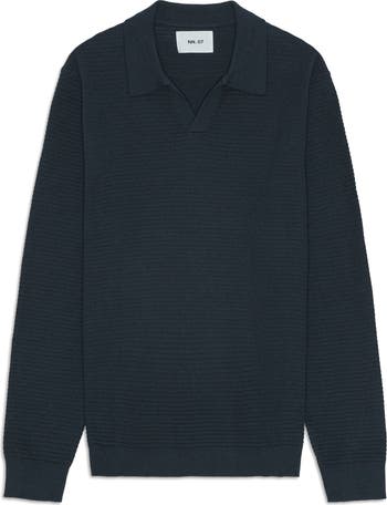 Subtly textured ribbing rings a sweater that's knit from soft organic cotton and topped with an open polo collar for a relaxed, sporty finish. Great on its own and easy to layer into your cool-weather wardrobe, it makes an effortless complement to any elevated-casual outfit.