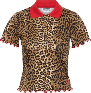 A contrast collar and lettuce-edge trim pop from this fabulous leopard-printed polo cut from a soft organic-cotton blend.