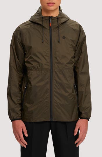 Upgrade your season-spanning staples with this relaxed fit hooded windbreaker that features a weather-resistant shell.