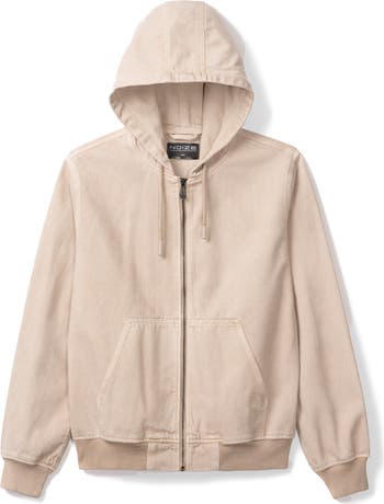 A classic zip front hoodie is updated with an all-cotton denim fabric and split kangaroo pocket for ultimate style.