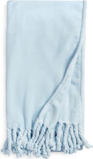 Cuddle up in your favorite reading nook in this plush and lustrous fleece throw blanket edged with knotted fringe for homey texture.