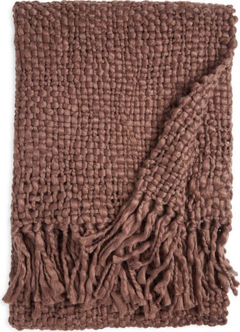 Perfect for gifting, this lovely throw blanket is handwoven from a mix of thick and thin yarns that give it rich depth and texture.