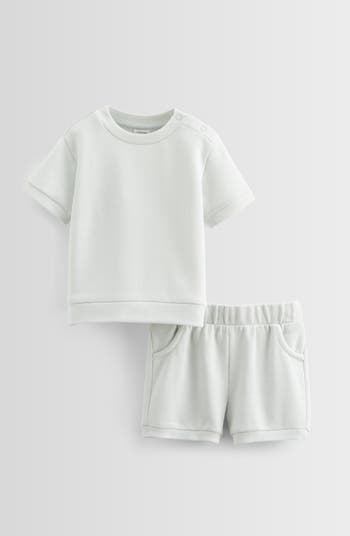 A cute and easy choice in supersoft fabric, this woven ensemble features a shoulder-snap top and elastic-waist shorts.