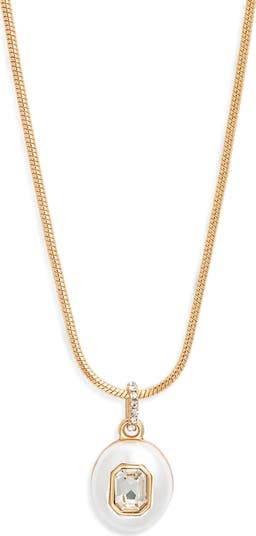 A bezel-set faceted crystal sparkles within a milky oval pendant on this snake-chain necklace that adds captivating shine to your neckline.